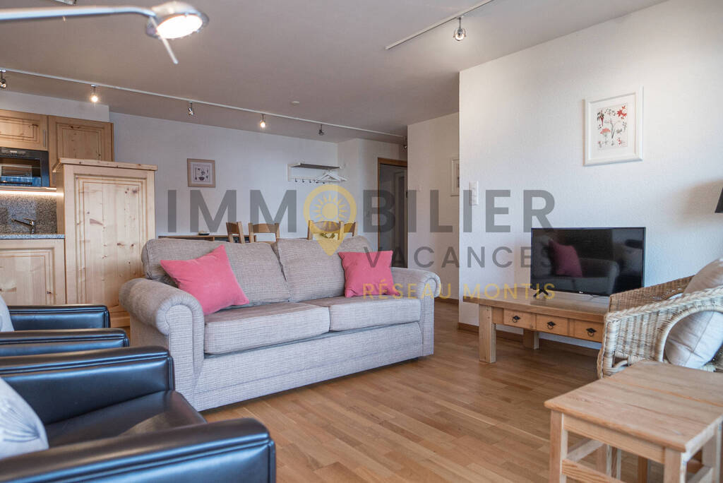 Appartement lumineux, contemporain et confortable avec 2 chambres et 2 salles d'eau. Vue splendide, grande terrasse plein sud. Accès aisé, place de parc intérieure directement dans le bâtiment, ascenseur. Situé à l'entrée du village, proche de toutes commodités.