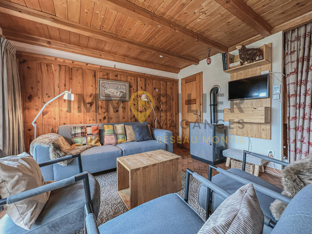 Idéalement situé, à proximité du vieux village, à 2' à pied du départ du funiculaire. Chalet sur 2 niveaux pour 6 personnes, grande terrasse avec mobilier, vue superbe. Hall d'entrée. Séjour simple et chaleureux avec téléviseur (Bluewin TV) et lecteur DVD, internet par wifi. Cuisine ouverte équipée d'un four à micro-ondes, machine à café et chauffe-eau (pas de lave-vaisselle). Local de stockage, WC et lavabo. A l'étage, 3 chambres : 1 avec 2 lits individuels, 1 avec grand-lit (140x200) avec accès au balcon et 1 avec 2 lits superposés. Une salle de bain avec baignoire. Accès aisé, garage privé (hauteur 2,05m) directement devant le chalet (possibilité de mettre une seconde voiture devant le garage). Animaux non admis.