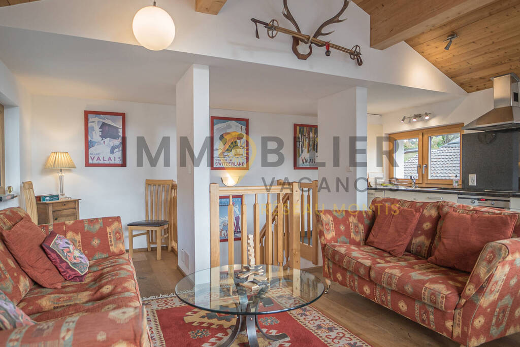 Rez supérieur: superbe séjour spacieux lumineux avec poêle suédois (bois non fourni. En vente au supermarché du village), TV, lecteur dvd, internet et accès balcon. Cuisine ouverte avec vitro-Céram 4 plaques, lave-vaisselle. Rez inférieur: Une première chambre avec 1 lit double et accès terrasse. Une seconde chambre avec 1 lit double. Une salle de douche avec WC et lavabo. Armoires de rangement dans chaque chambre. Machine à laver et séchoir. Garage privée avec accès direct au chalet. Animaux non admis.