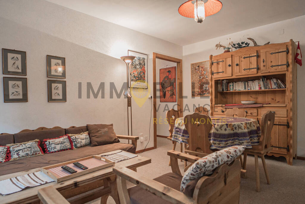 Joli appartement de 65 m2 au 1er étage de la résidence Solalp. Accès au funiculaire en 5 minutes à pied par un escalier. Hall d'entrée, séjour avec cheminée (bois non fourni en vente au supermarché du village), TV câblée, coin à manger. Chambres : 1 x 2 lits simples côte à côte, 1 x 2 lits superposés. Salle de bain avec baignoire, cuisine fermée équipée (sans lave-vaisselle). Balcon, place de parc extérieure no 6. Animaux non admis.