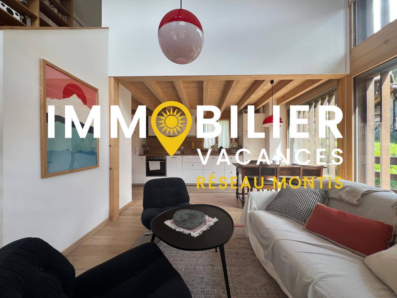 Très beau chalet typique et confortable sur 2 niveaux avec jardin, terrasse meublé. Vue absolument splendide ! Situé à 5 minutes à pied du v